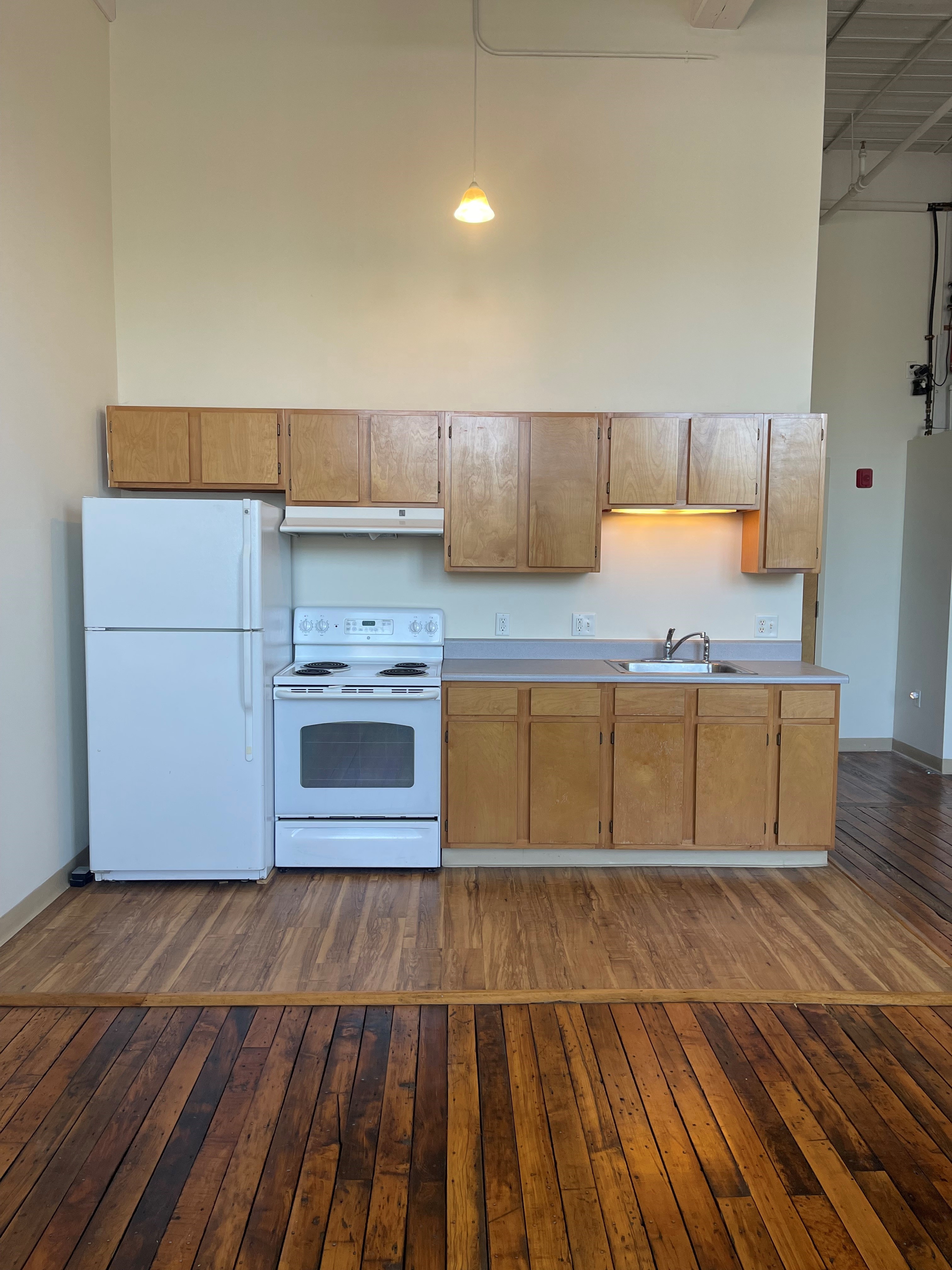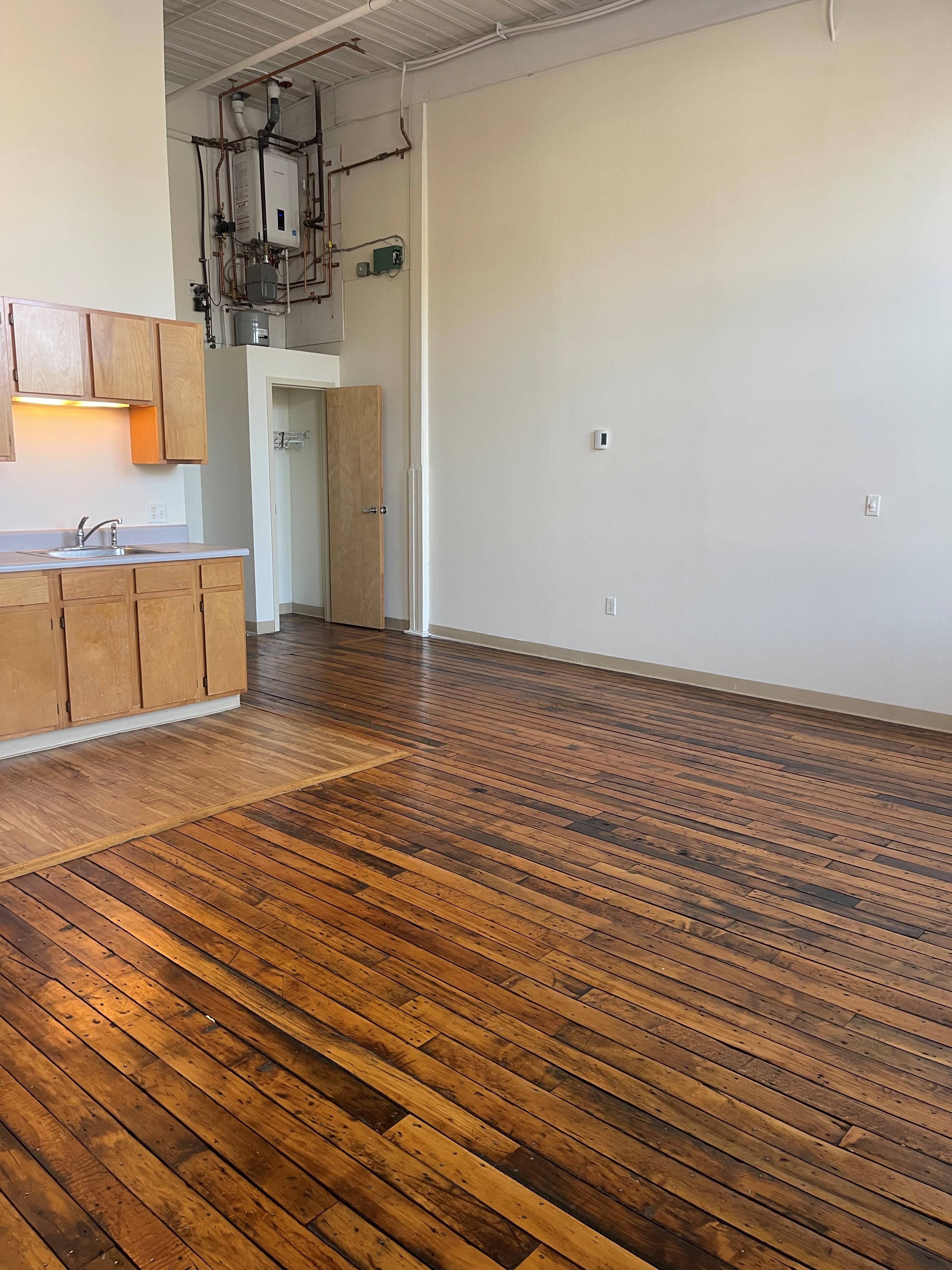 Come check out this studio space! The unit is open concept and it features original hardwood floors, over-sized windows that let in a lot of natural light and fabulous 17ft ceilings! This desirable apartment is located on the top floor of the Plant with a laundry facility right down the hall!