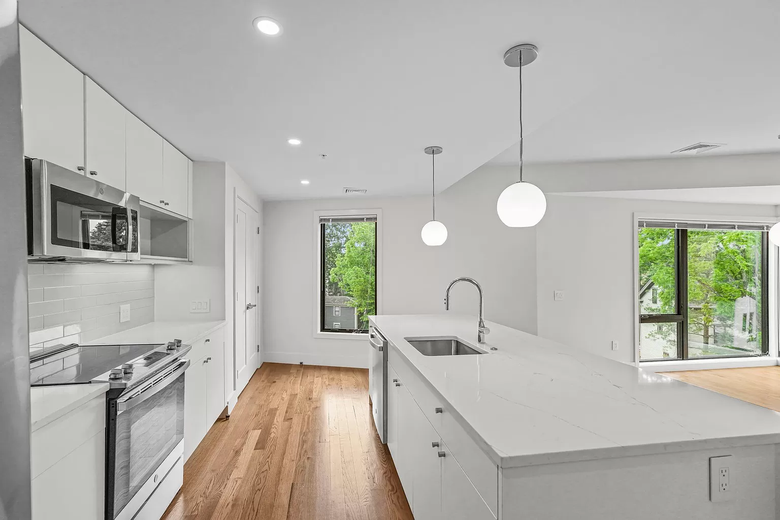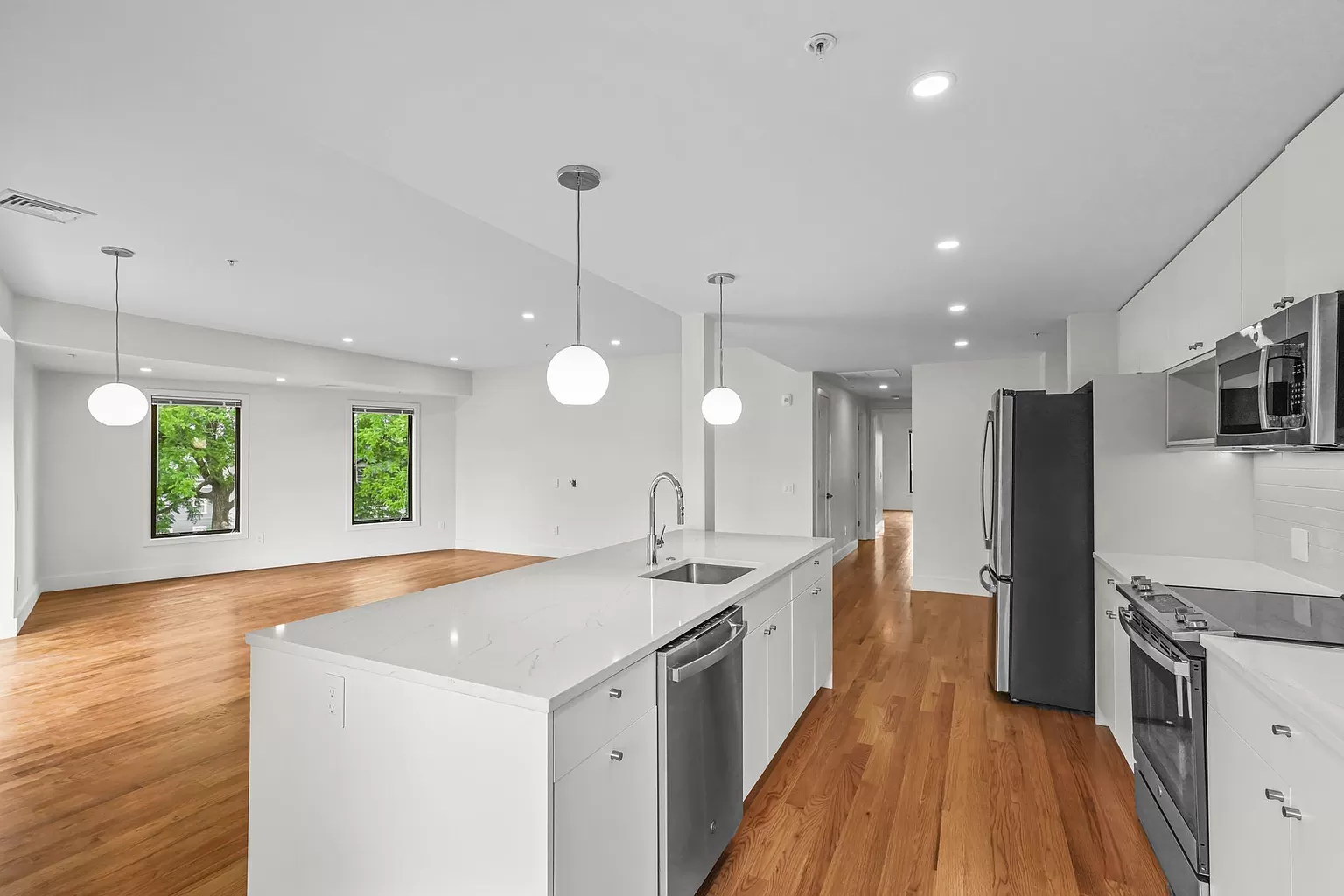 Modern amenities abound, with completely brand new in-unit laundry, dishwasher, other kitchen appliances, HVAC, lighting, plumbing, and more.